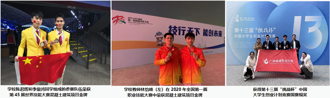 学校是广东省高等职业教育“创新强校工程”A类规划建设院校、广东省深化新时代教育评价改革试点高校、广东省内部质量保证体系诊断与改进省级试点院校、广东省“三全育人”体制机制试点单位等单位,荣获广东省依法治校示范校、广东省五一劳动奖状、广东省大学生创新创业教育示范校、广东省高校毕业生就业工作先进集体等诸多荣誉,近年来,获得教学成果二等奖1项,主持广东省教育教学成果一等奖1项、二等奖2项,获中国“互联网+”大学生创新创业大赛全国总决赛金奖2项、银奖2项、铜奖3项,获得了中华人民共和国届职业技能大赛混凝土建筑项目,获“挑战杯”中国大学生创业计划竞赛全国决赛金奖1项、银奖1项,获全国职业院校学生专业技能大赛国赛一等奖1项、二等奖2项、三等奖8项,获全国大学生数学建模竞赛国赛一等奖2项、二等奖7项。学校在2022年“三大国赛”高职院校排行榜上排名全国第130位、广东省高职第9位。获得中国“互联网+”大学生创新创业大赛广东省金奖5项、银奖24项,获得广东省职业技能大赛省级以上奖项260多项,其中1项、银牌1项、铜牌2项,一等奖52项、二等奖105项。