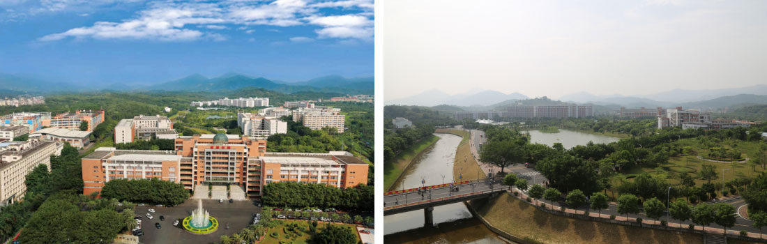 学校坐落于广州市从化区主城区,占地面积1300多亩,是“广东省绿色校园”,校园树荫繁盛,湖光山色,环境清幽宜人,秀丽的自然风光和优美的人文景观相映成趣;校外商场林立,购物方便,地铁畅通,便捷的交通方式和多彩的休闲娱乐一应俱全,为广大教职工提供了舒适的学习、生活和工作环境。